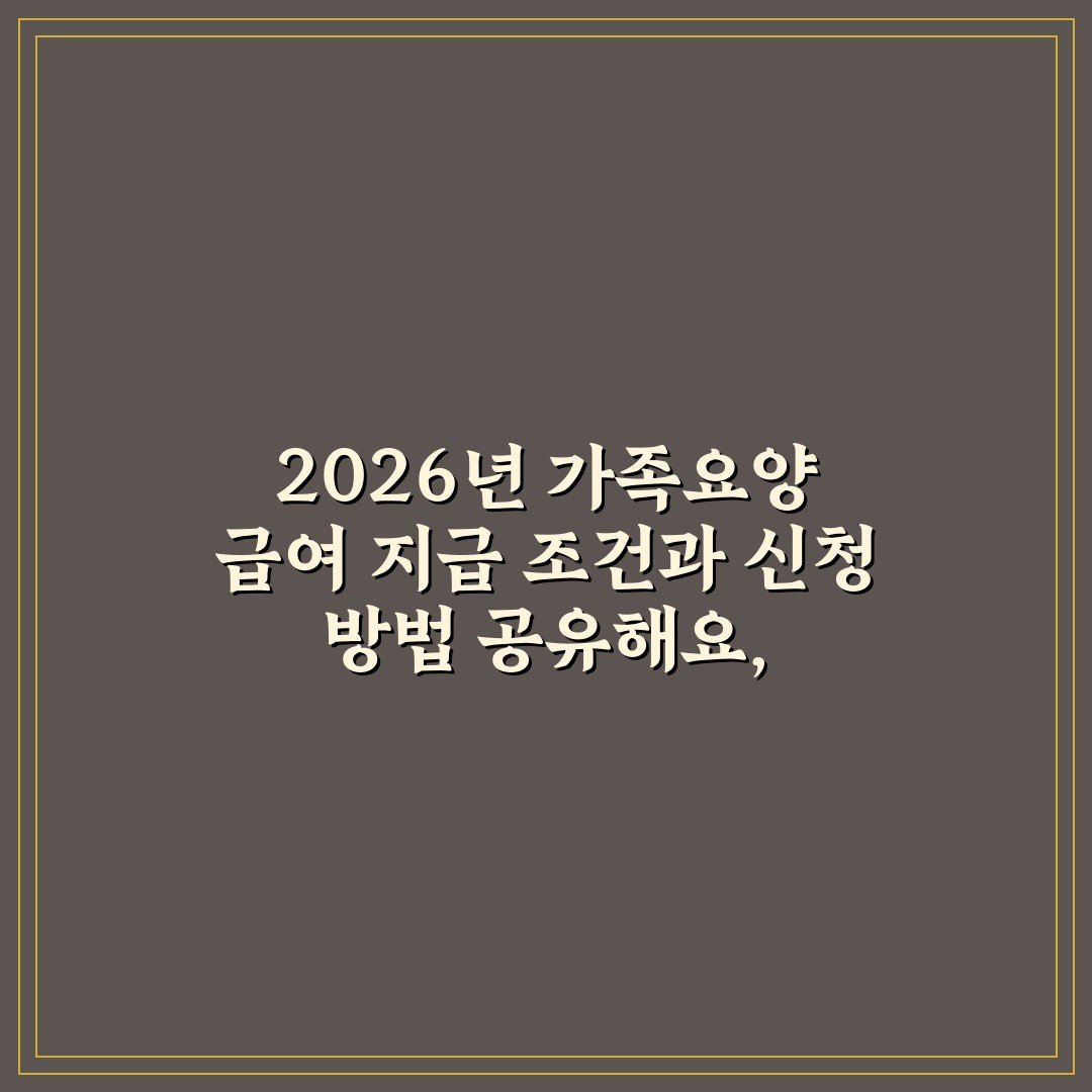 2026년 가족요양 급여 지급 조건과 신청 방법을 알아보세요! 60분, 90분 급여의 상세 정보와 신청 절차를 안내합니다. 클릭하여 확인해보세요!