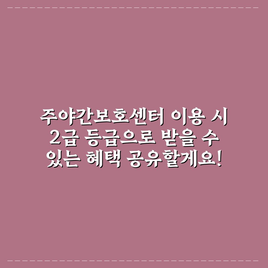 주야간보호센터를 이용할 때 2급 등급으로 받을 수 있는 다양한 혜택을 소개합니다. 유용한 정보로 여러분의 선택에 도움을 드립니다! 클릭해 보세요!