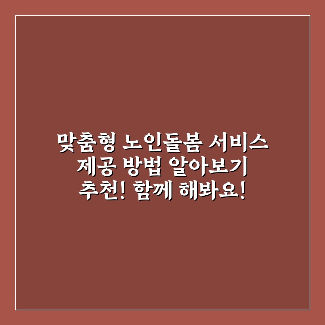 1. 맞춤형 노인돌봄 서비스 제공 방법 알아보기 – 이렇게 시작해봤어요