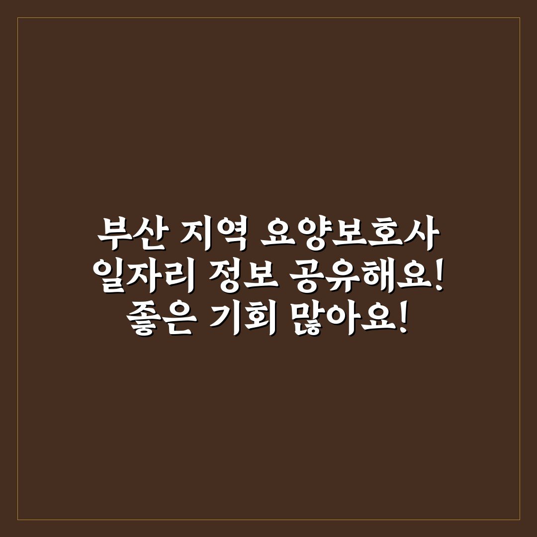 부산 지역 요양보호사 일자리 정보 공유해요! 좋은 기회 많아요!